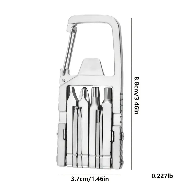 • 13-in-1 survival functions including knife, wrench, screwdrivers, and bottle opener